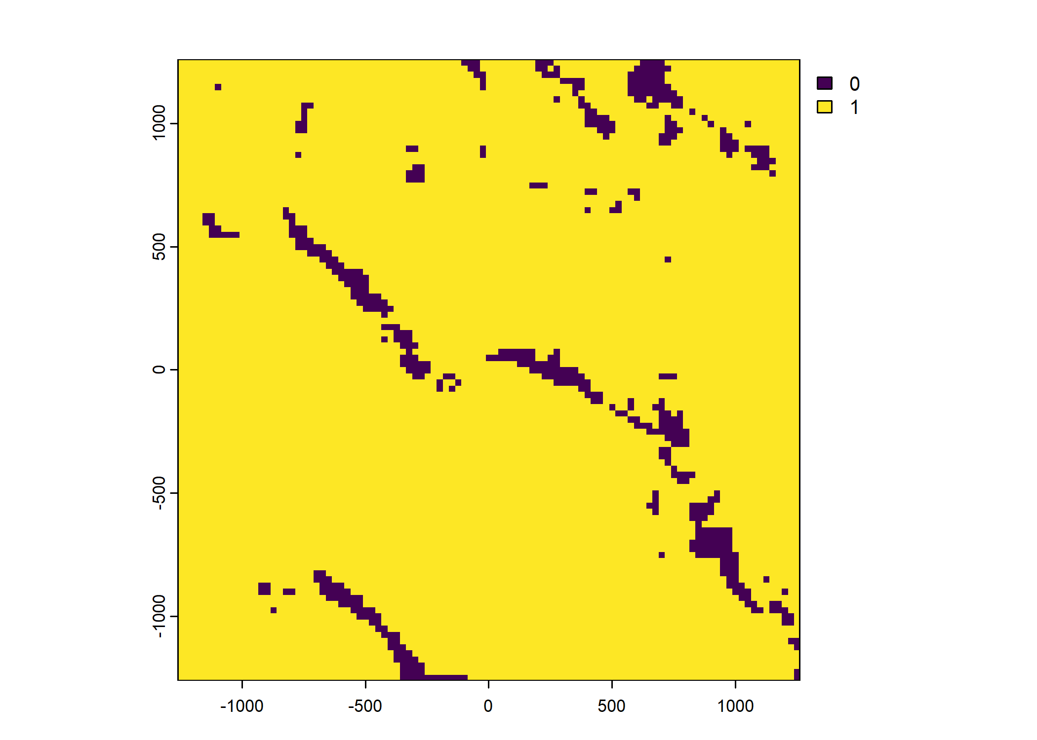 pres_cent_x2_within_cell <- rasterize(points_vect_cent_x2_within_cell, pres_template, background=0)